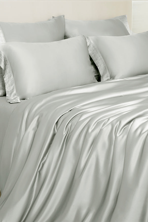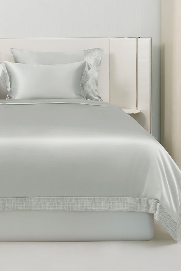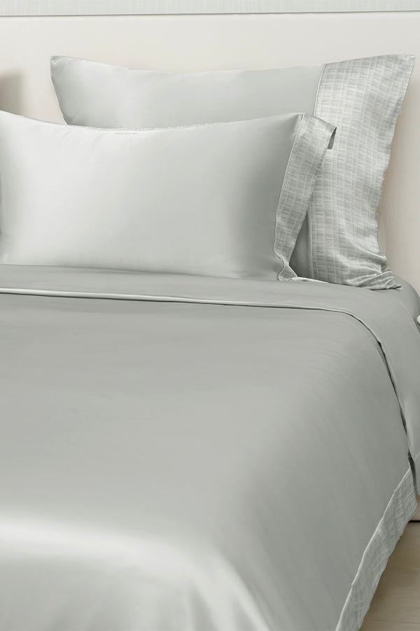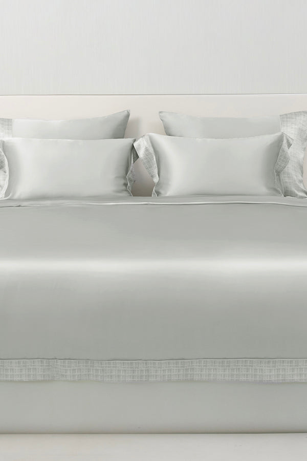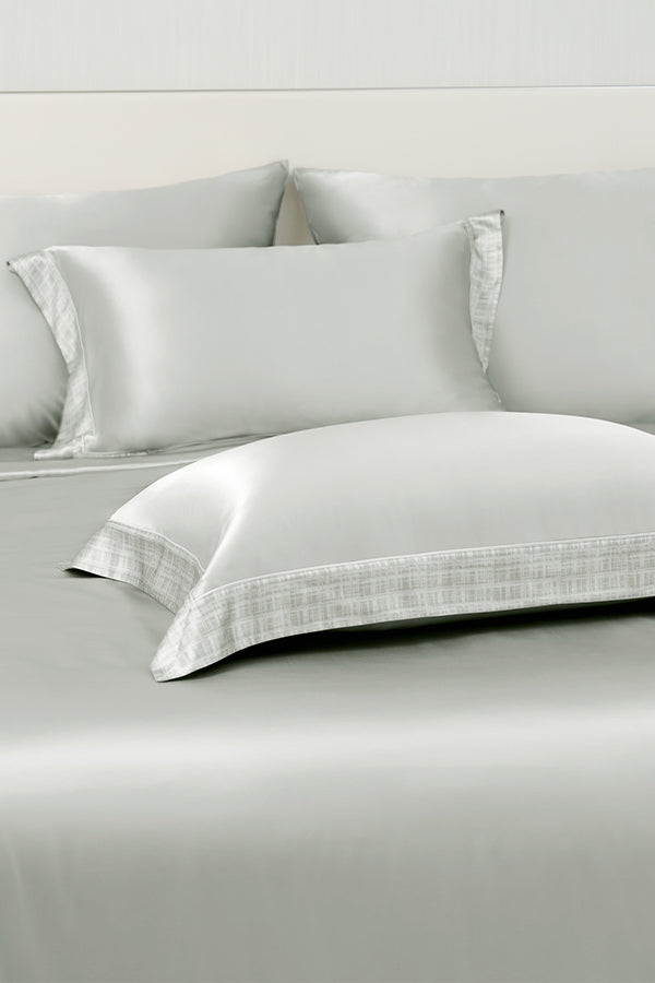 Aether 床单四件套以石英灰为画布,演绎现代都市的睡眠美学。素色桑蚕丝面料如晨雾般轻柔亲肤,经典格纹印花打破单调。当阳光透过纱帘,石英灰的底色会呈现出大理石灰的细腻渐变;夜幕降临时,桑蚕丝则沉淀出如美术馆墙面的铅灰质感。每一次就寝都是对生活美学的沉浸式体验。
