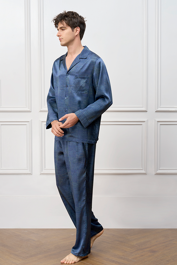 - 经典男士睡衣套装,融合几何美学与精致工艺,呈现低调奢华质感。