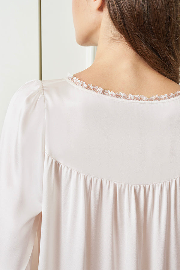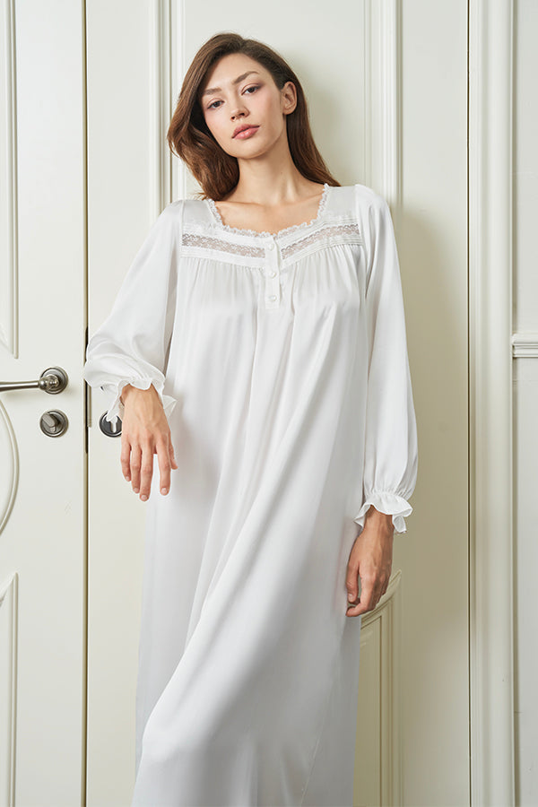 Dream 蕾丝连衣裙让高品质桑蚕丝素绉缎温柔包裹你的居家时光。芭蕾粉色温柔甜美,净荼白纯净雅致,精致蕾丝点缀领口袖口,方领设计展现优雅锁骨线条。从晨间咖啡到睡前阅读,这件兼具舒适与美感的家居服,让每个居家时刻都充满仪式感。
