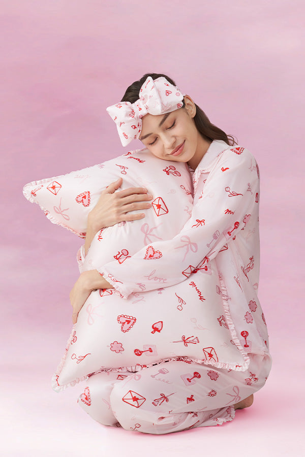 Love Notes 桑蚕丝枕套情人节限定款心动上线,满印樱桃、爱心、信封等浪漫元素,复刻约会时的甜美元气。甄选桑蚕丝素绉缎面料,触感细腻贴合肌肤。柔和樱桃粉调和卧室氛围,边缘木耳边精致点缀,让实用寝具化身卧室颜值单品,自用送礼皆是佳选。