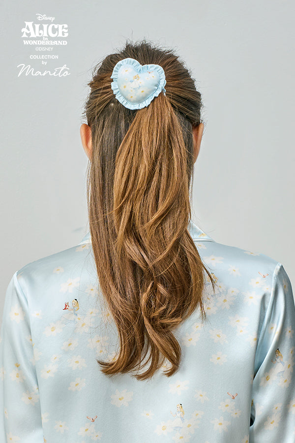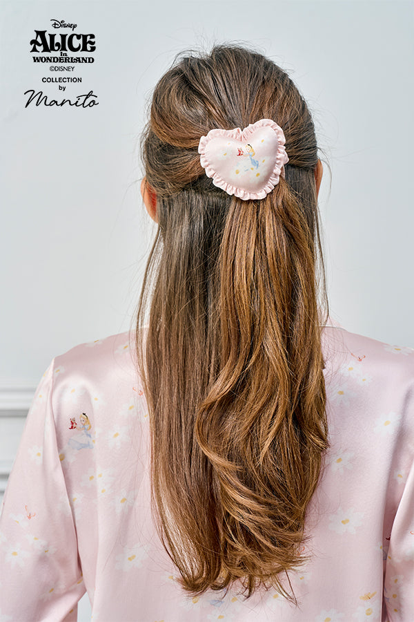 MANITO迪士尼爱丽丝合作系列 Daisy爱心发圈从经典动画开场汲取灵感,手绘雏菊花园中巧妙融入爱丽丝,维多利亚时代雏菊花语"天真纯洁"与爱丽丝童真气质呼应。 立体爱心充棉造型搭配精致褶皱边,饱满立体感提升发型丰盈度;两个一组限定包装采用礼盒设计,开盒仪式感十足。