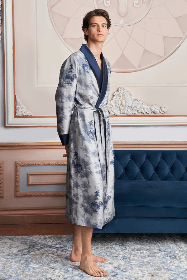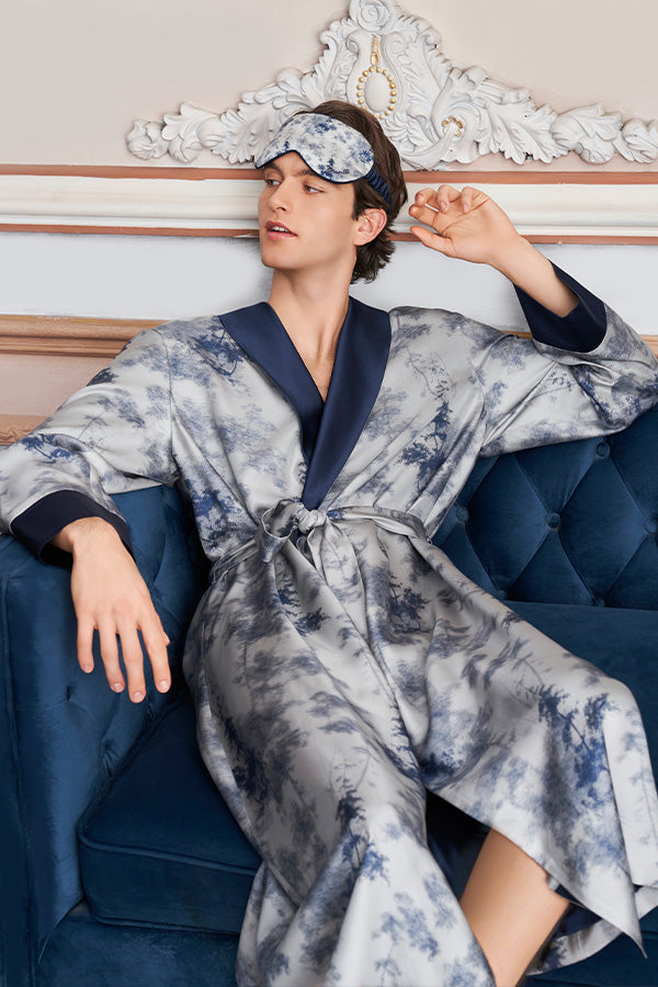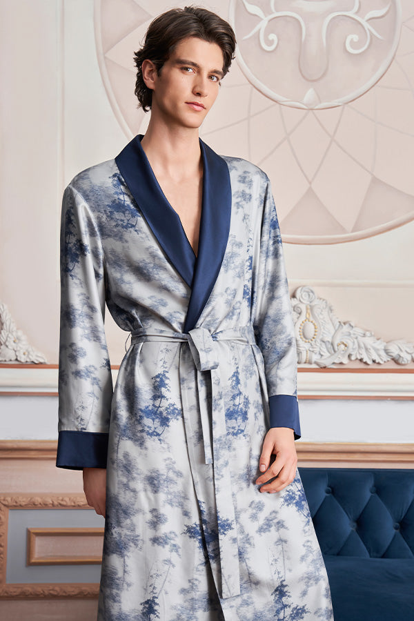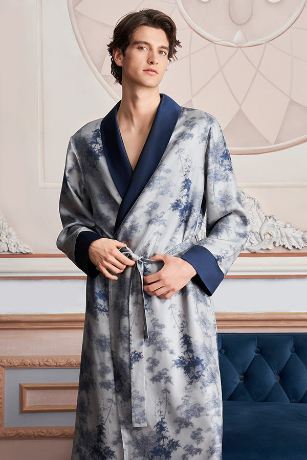 New Tropical树影男士桑蚕丝睡袍