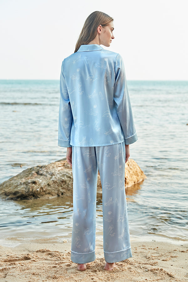Ocean Blue 桑蚕丝女士家居服套装