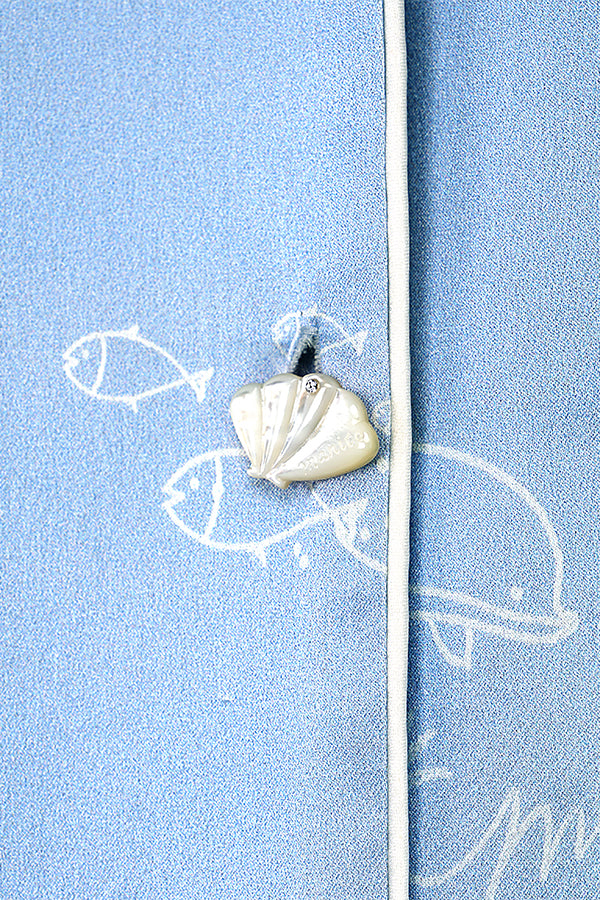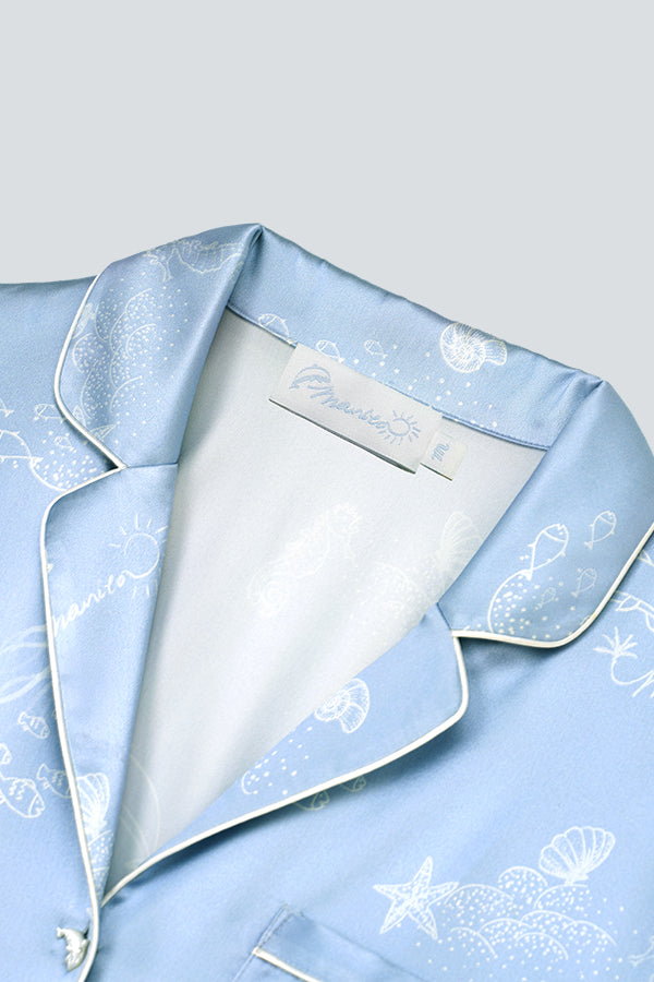 - 经典的authentic睡衣套装版型。海洋元素印花凸显主题,海洋元素异形贝壳扣,增加趣味性。