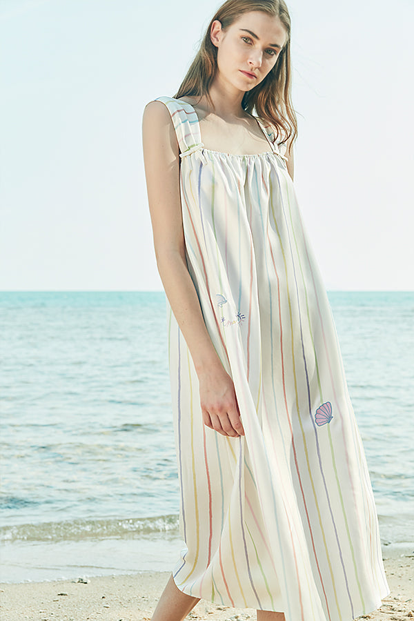 • 肩带抽褶长睡裙,展现女性俏皮活泼的一面。