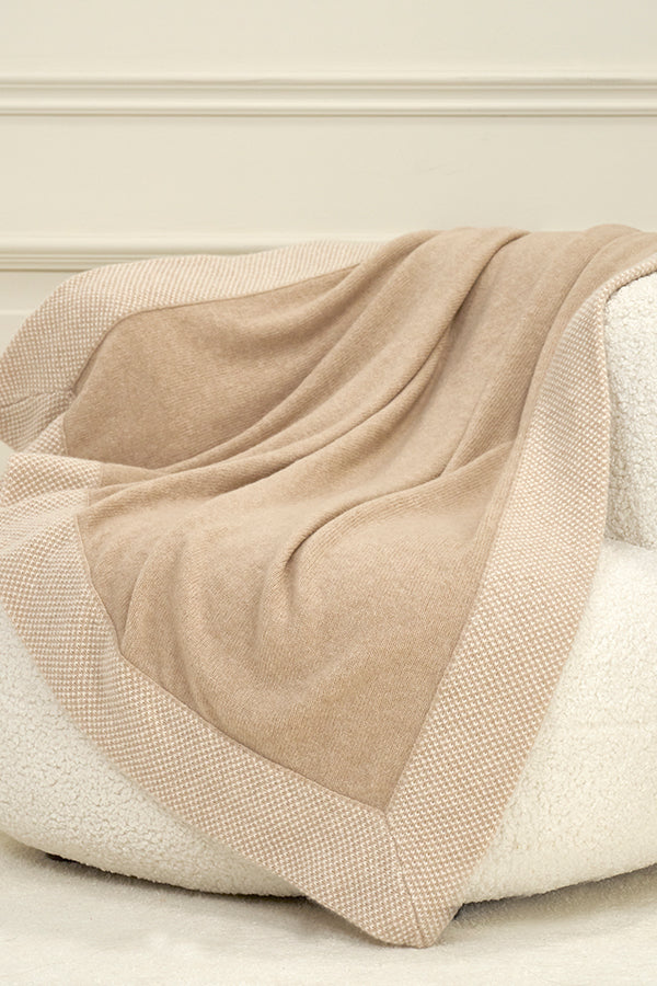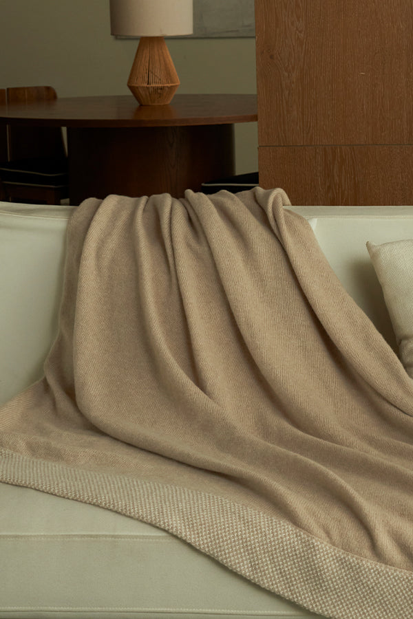 Sand Dune 针织盖毯将羊绒的暖意与蚕丝的柔滑以黄金比例交织,便诞生了这个会呼吸的温柔伴侣。沙驼色如同被夕阳轻抚过的沙漠,那些精心织就的丝绒纹理下,藏着羊绒的绵软拥抱与桑蚕丝的凉滑私语。无论是午后小憩时的轻触,还是深夜阅读时指尖的无意识摩挲,它总能以最恰当的体温回应。这不止是一件家居用品,更是现代人对抗忙碌生活的柔软武器。