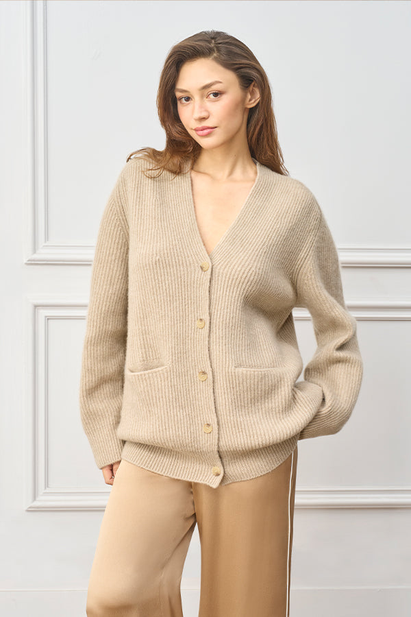 Wunder 针织开衫重新定义舒适时尚的边界。其宽松廓形打破性别局限,以沙驼色的经典质感演绎都市松弛休闲美学,羊绒的柔软包裹,桑蚕丝的光泽流动,实现保暖性与丝滑触感的完美平衡。无论是居家阅读时的慵懒伸展,还是周末远足的轻装出行,它都能用独特的错位美学,讲述属于你的风格故事。